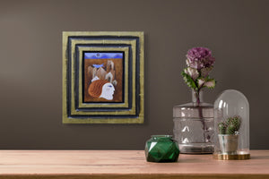 18 x 14 cm. Met lijst 35 x 31 cm.