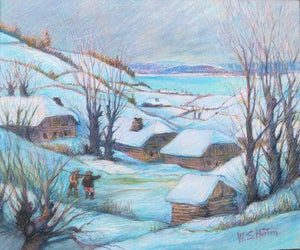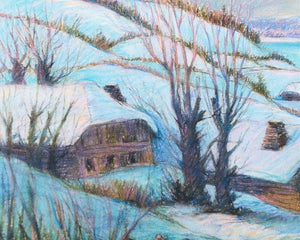 Deze pastel legt het ochtendmoment vast waarop je wakker wordt in je skichalet en de bergen bedekt zijn met sneeuw. Horton heeft het wit van de sneeuw zo mooi vastgelegd dat je meteen het gevoel hebt dat je erbij bent en de gordijnen opendoet. Klaar voor de eerste afdaling tussen de kleine boerderijtjes.