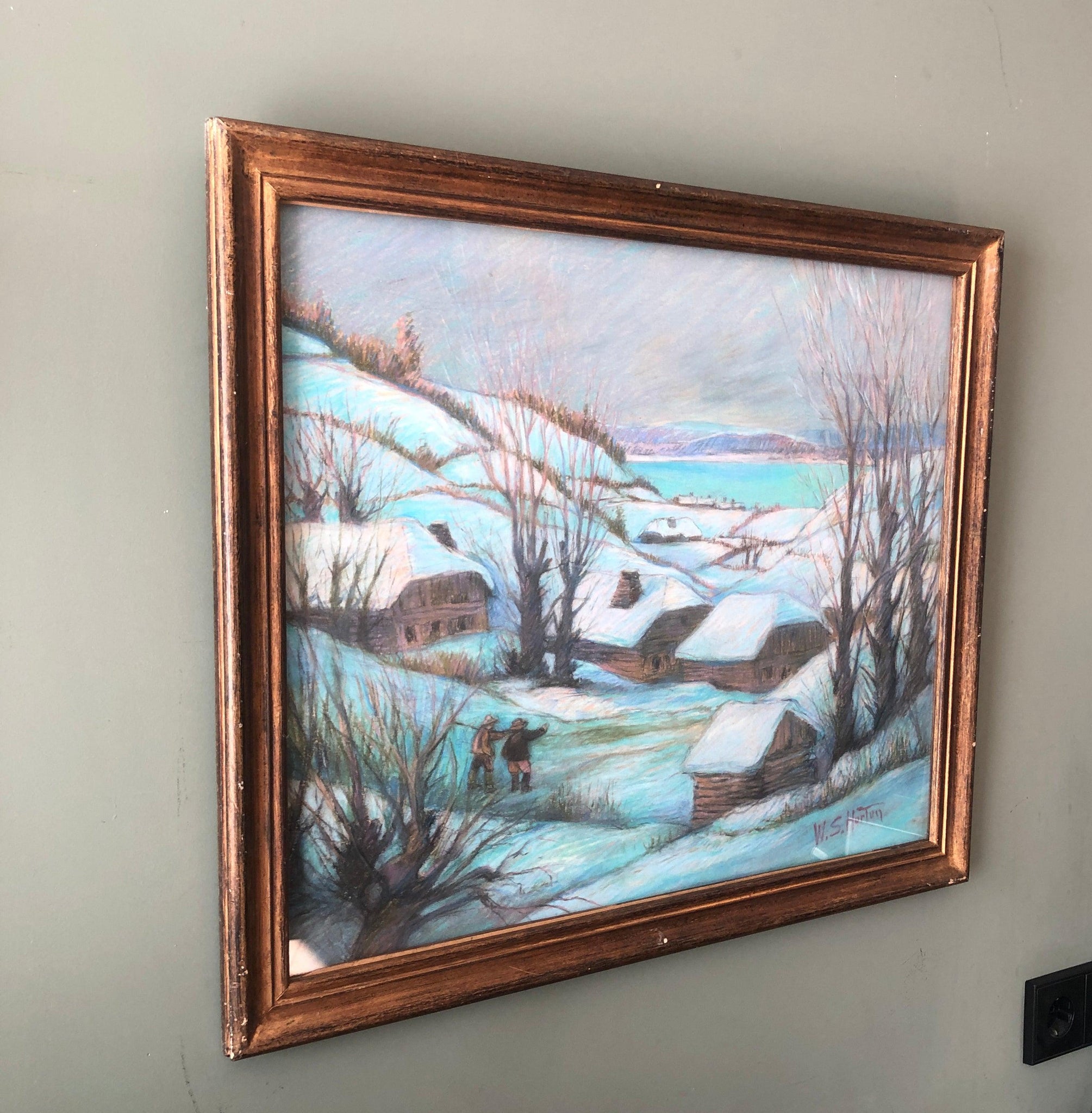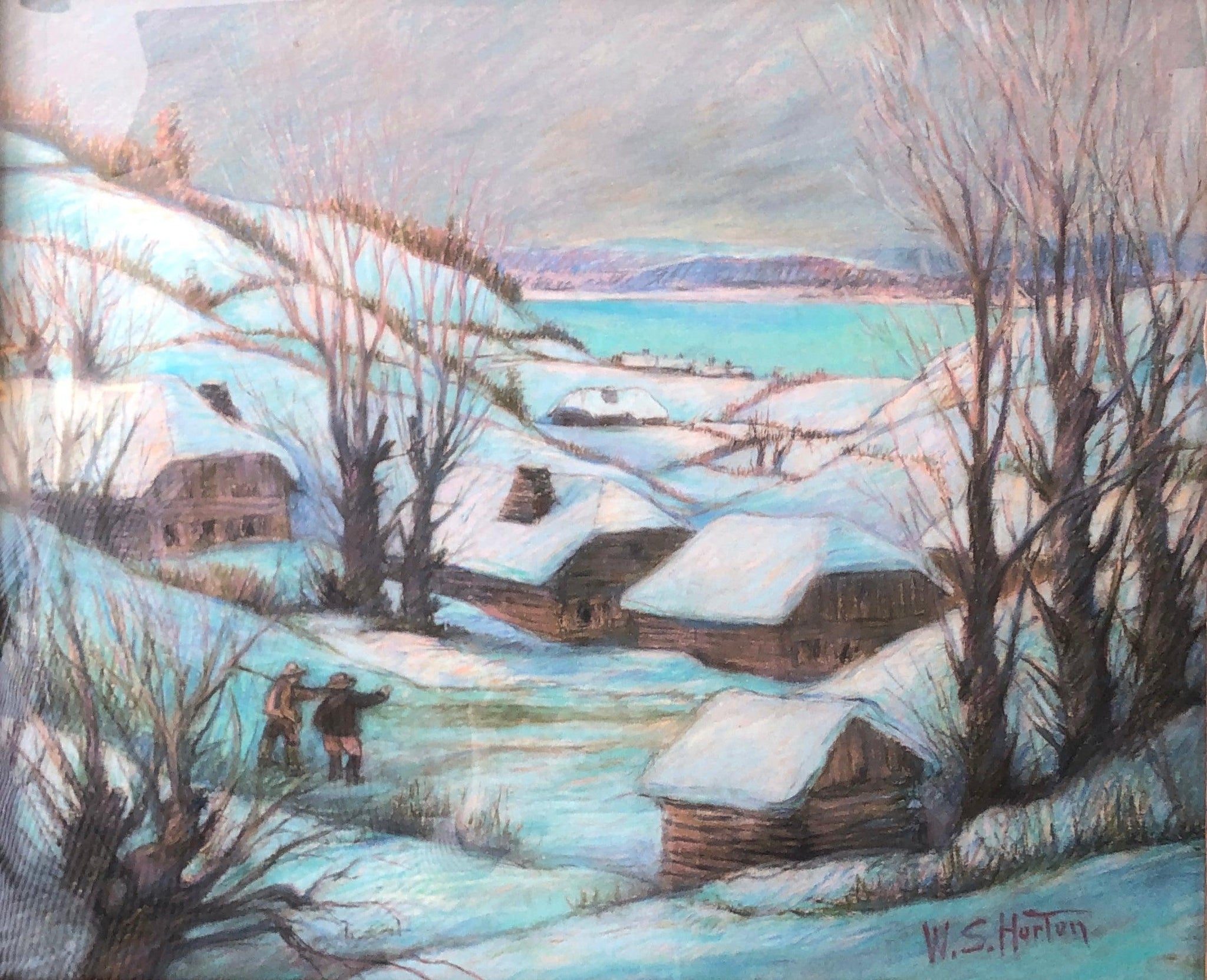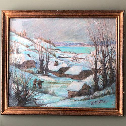 This pastel captures the morning moment when you wake up in your ski chalet and the mountains are covered in snow. Horton has captured the white of the snow so beautifully that you immediately feel as if you are there, opening te curtains. Ready for the first descent between the small farms.